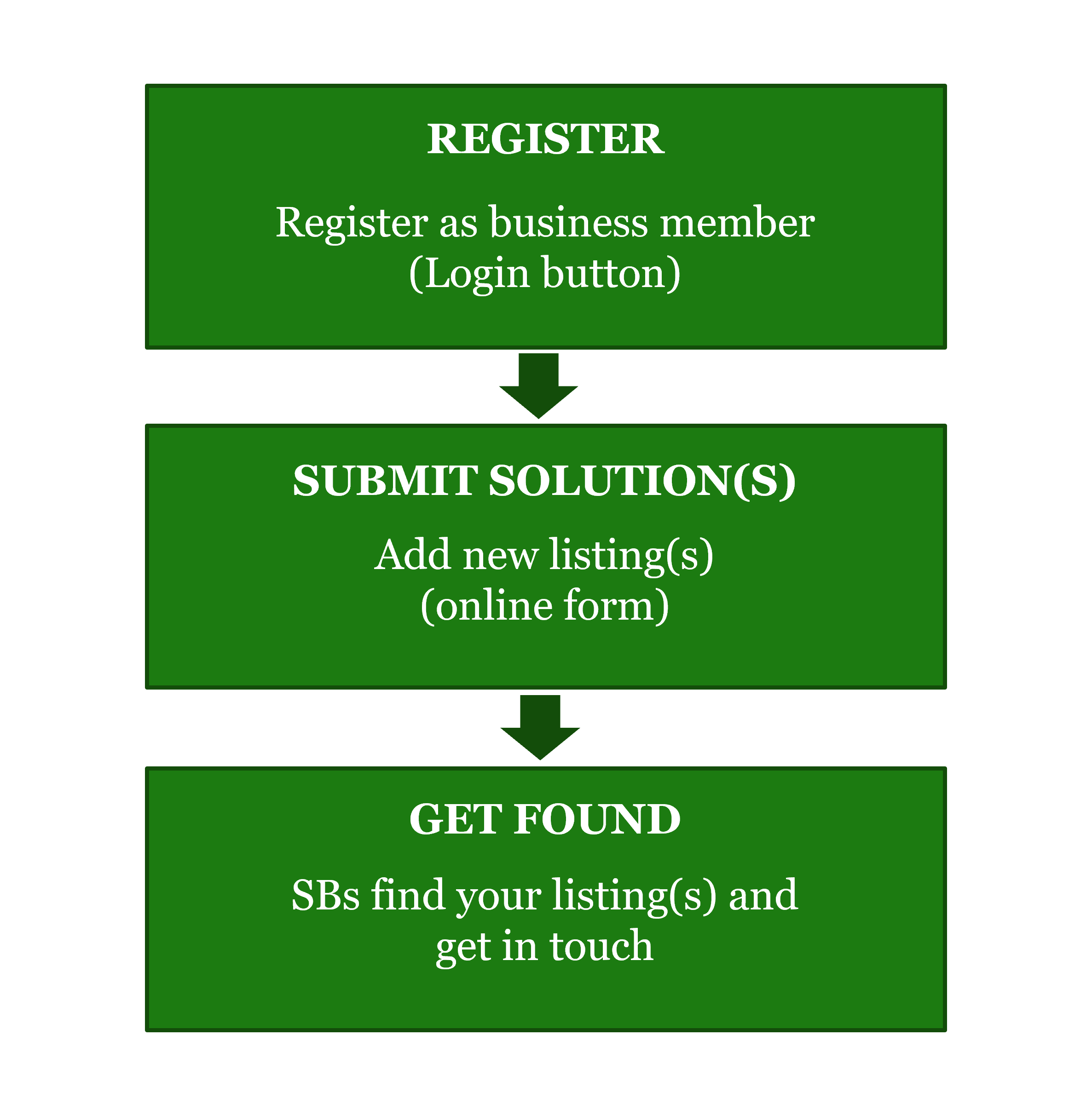Business member registration and GBM listings are subject to approval by P27. SBs can find solutions right for them using a search facility and contact LOs directly from the listings.